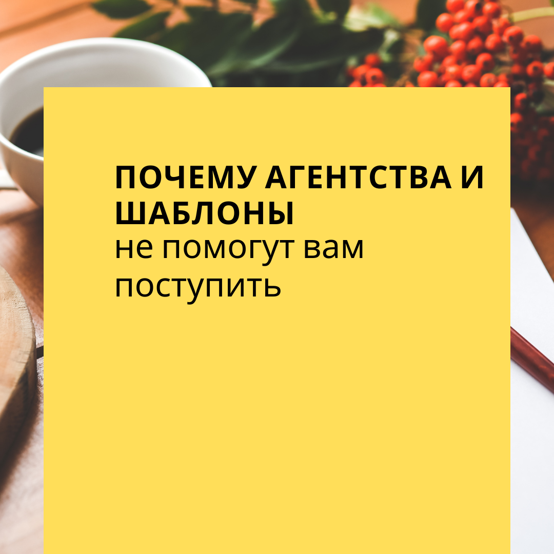 Для написания мотивационного письма нельзя использовать шаблоны из интернета. Общедоступные шаблоны, а также шаблоны, по которым пишут агентства доступны десяткам, сотням и тысячам кандидатов. С таким МП невозможно выделиться, там буду фразы, как у всех остальных. Именно поэтому я никогда не пишу студентам их МП. Я не могу написать тысячам абитуриентов абсолютно уникальные МП. Все равно будут неосознанно повторяться какие-то фразы и структуры. Я всегда удивляюсь абитуриентам, которые хотят мне заплатить, чтобя я им написала. Такие студенты подставляют сами себя и могли бы мне снизить процент успешных МП. Я этого не хочу, поэтому никогда и ни при каких условиях я не пишу МП.