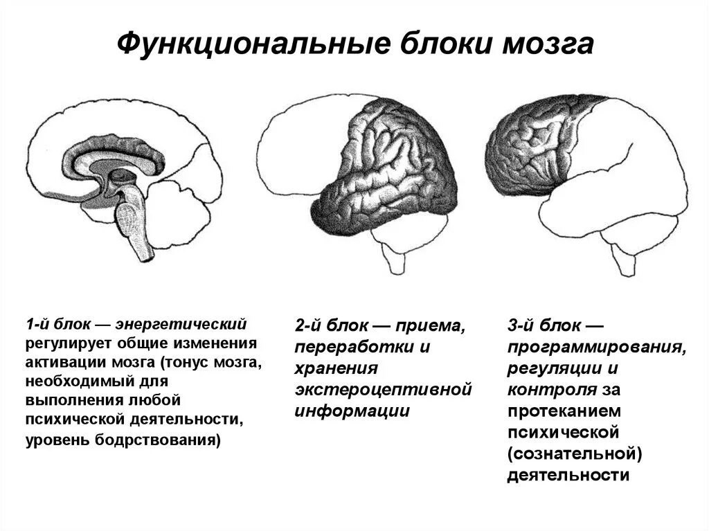 Третий блок мозга (лобные доли) тормозят рефлекторное реагирование на среду, а благодаря определённым упражнениям речь формируется как реагирование по замыслу, то есть по речевому плану