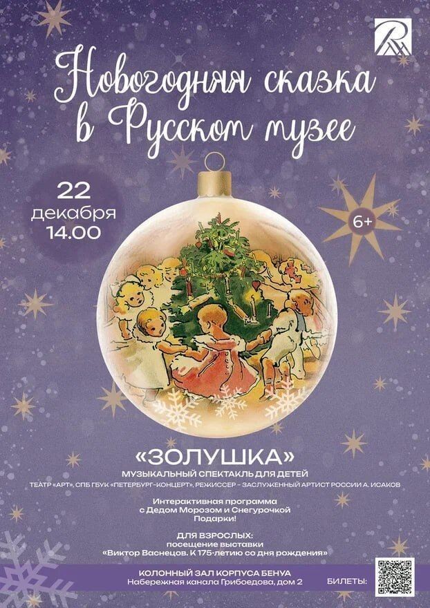Завтра, 22 декабря, в Корпусе Бенуа пройдет «Новогодняя сказка в Русском музее». В её программе сразу два мероприятия. Так, маленьким гостям Русского музея покажут музыкальный спектакль «Золушка» от театра «Арт». По его окончании детей будет ждать встреча с Дедом Морозом и Снегурочкой, а также подарки. В свою очередь, более взрослые посетители смогут насладиться грандиозной выставкой Виктора Васнецова, приуроченной к 175-летию со дня рождения художника. «Новогодняя сказка в Русском музее» начнётся в 14:00. Ранее сообщалось, что на выставке Кузьмы Петрова-Водкина в Петербурге нашли загадочное полотно.