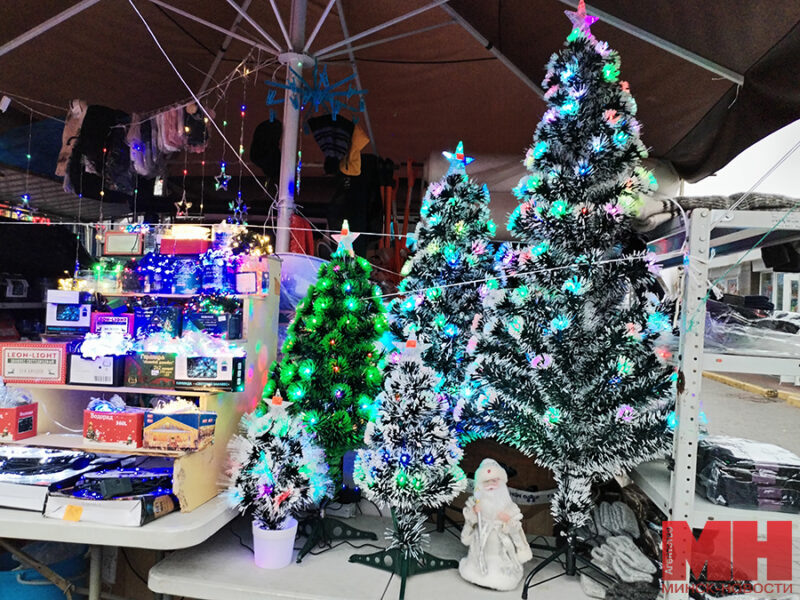 До Нового года остается чуть больше недели. Горожане закупаются подарками, вкусной едой и, конечно, елками. Где выгоднее приобрести зеленую красавицу, разбиралась корреспондент агентства «Минск-Новости». Заглянула в Центральный универмаг столицы. Даже в будний день здесь многолюдно. Покупатели снуют вдоль витрин с новогодними атрибутами. Елок много и разнообразные, на некоторые деревья — скидка. Хотите настольный вариант или под потолок — все найдется. На ценниках уточняется, что производитель искусственных деревьев — Китай или Беларусь. Вторых больше. Цены от 28 до 500 рублей, что зависит от размера и других характеристик дерева. В центре зала разбросала ветки гигантская елка в 5 м за 6 336 рублей. Сделали дерево в Беларуси. Предназначение ее явно не для квартир — не вместится в «квадраты». Зато порадует коллектив крупного предприятия. Не хотите елку, есть альтернатива — гирлянда, ветка или рождественский венок. Стоит удовольствие от 29 до 99 рублей. Две дамы рассматривают венок. Любо