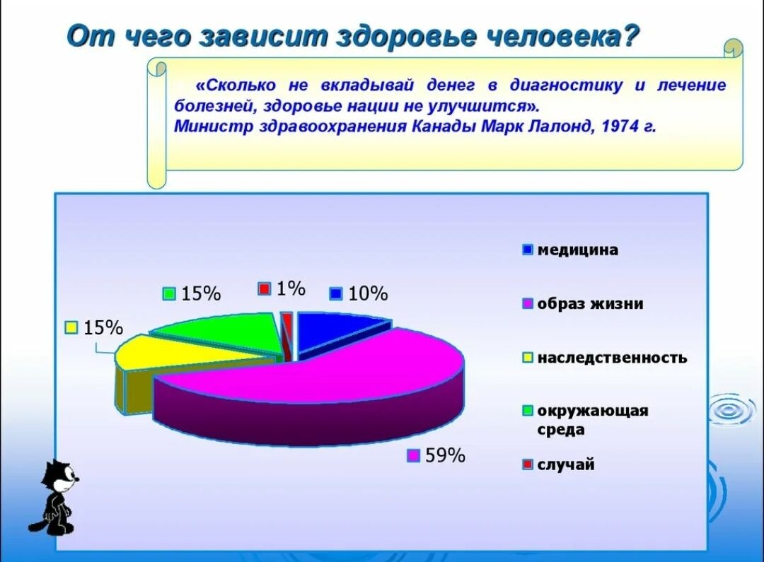Наши западные заклятые друзья нравятся мне тем, что умеют считать каждую копейку. Поэтому, по поводу всяческих расчётов, от чего зависит это самое здоровье человека, привожу в пример их статистику. И что бы я ни делал, и как бы не скакал вокруг вас с бубном, всё только в ваших руках! Здоровья!