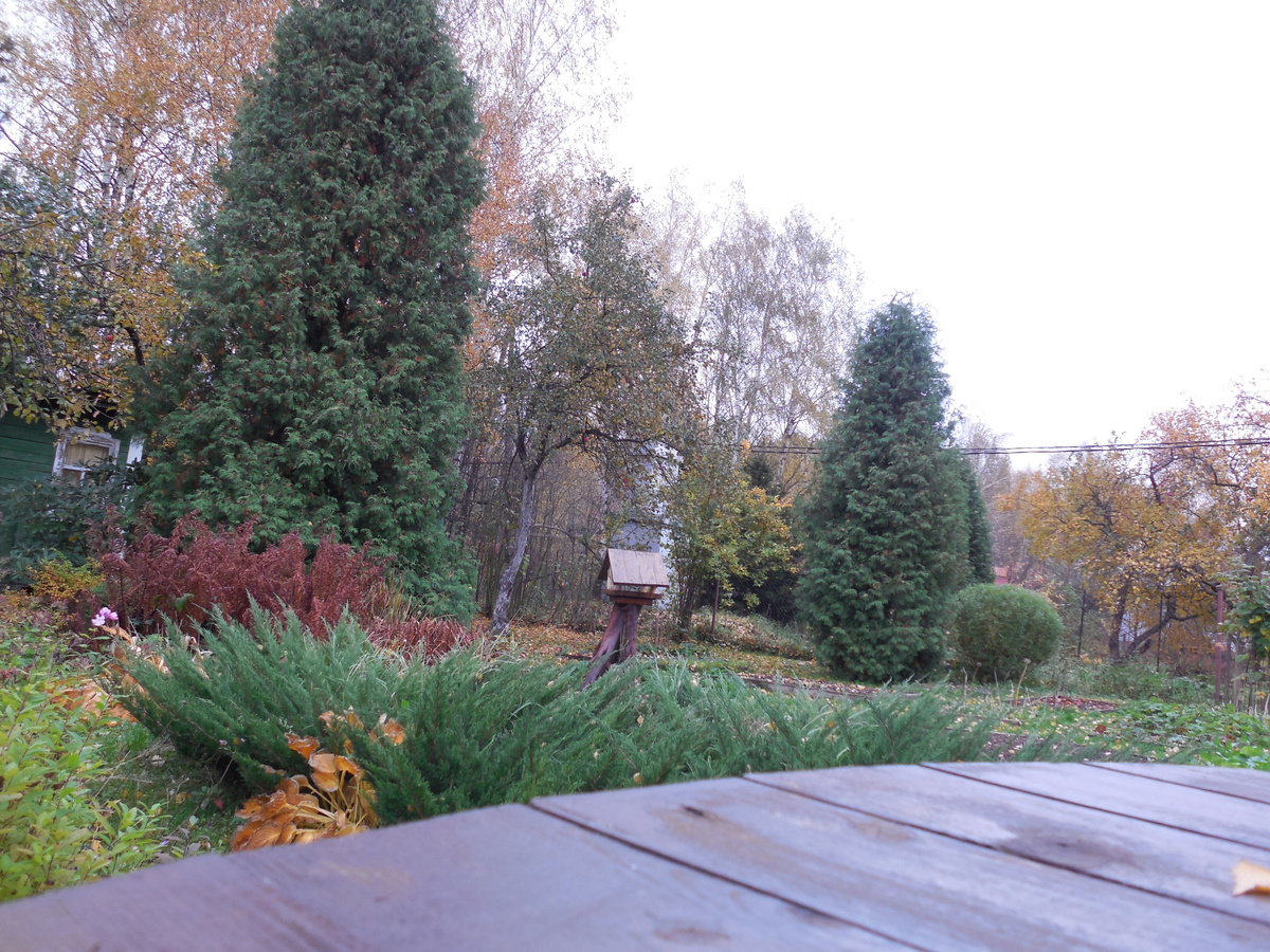 И не шишки у туй, которые раскрываются, роняя на землю, на траву и вообще вокруг, семена, которые, возможно, прорастут в следующем сезоне.