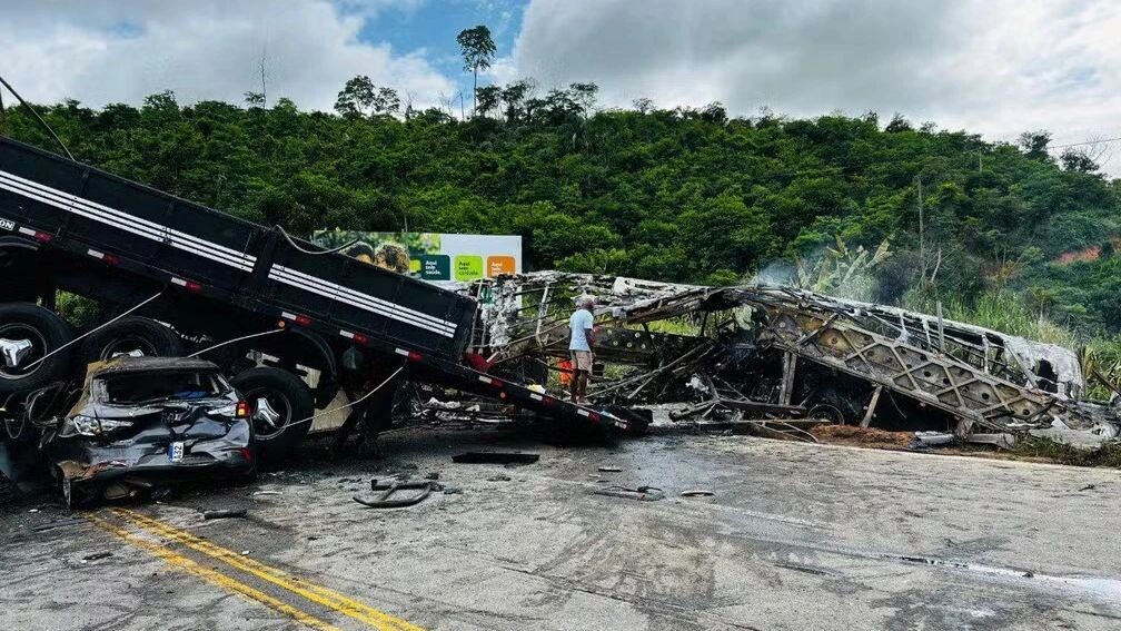 Трагическое ДТП случилось в бразильском городе Теофило-Отони в 3:30 утра. На 285-м километре дороги BR-116 столкнулись автобус Entram, который ехал из Сан-Паулу в Виторию-да-Конкиста, прицеп и легковой автомобиль. По данным пожарной службы Бразилии, у автобуса лопнуло колесо, водитель не справился с управлением и врезался в прицеп. Идущий сзади автомобиль в свою очередь влетел в автобус, от чего тот загорелся. В результате аварии погибли 22 человека, 13 пострадавших доставили в медучрежедения Санта-Росалия и Раймундо Гобира, сообщил сайт G1. «К счастью, все пассажиры и водитель легкового Fiat Argo были спасены. Однако у нас было большое количество обгоревших жертв из автобуса», — рассказал лейтенант Алонсо Виейра Жуниор. Из-за ДТП трасса была полностью закрыта примерно на шесть часов. По данным бразильских СМИ, на участке шоссе, где произошла авария, находился радар, ограничивавший скорость транспортных средств до 60 км/ч. Однако его недавно сняли по причине истечения срока действия те
