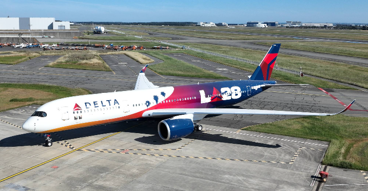 Ливрея LA28 предназначена для Олимпийских игр 2028 года в Лос-Анджелесе. На фюзеляже самолета виден переход фирменного синего цвета Delta к олимпийскому золоту, а на корме отчетливо видна надпись "LA28".