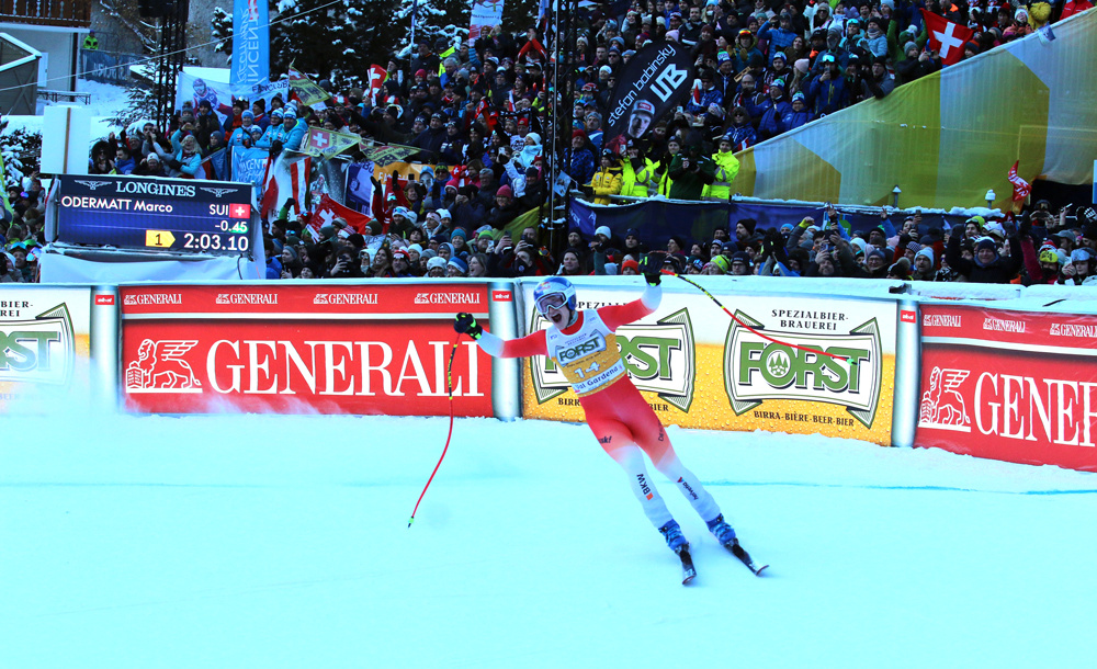 Одерматт уже четыре раза поднимался на подиум в Валь Гардене, но победа до сих пор не давалась ему – до сегодняшнего дня. Сегодня швейцарец оставил всех соперников далеко позади. Действующий обладатель Кубка мира в общем зачете рискованно и в то же время очень чисто проехал сложный отрезок Ciaslat, где ошибались многие сильные соперники. В итоге он финишировал с отрывом почти в полсекунды.