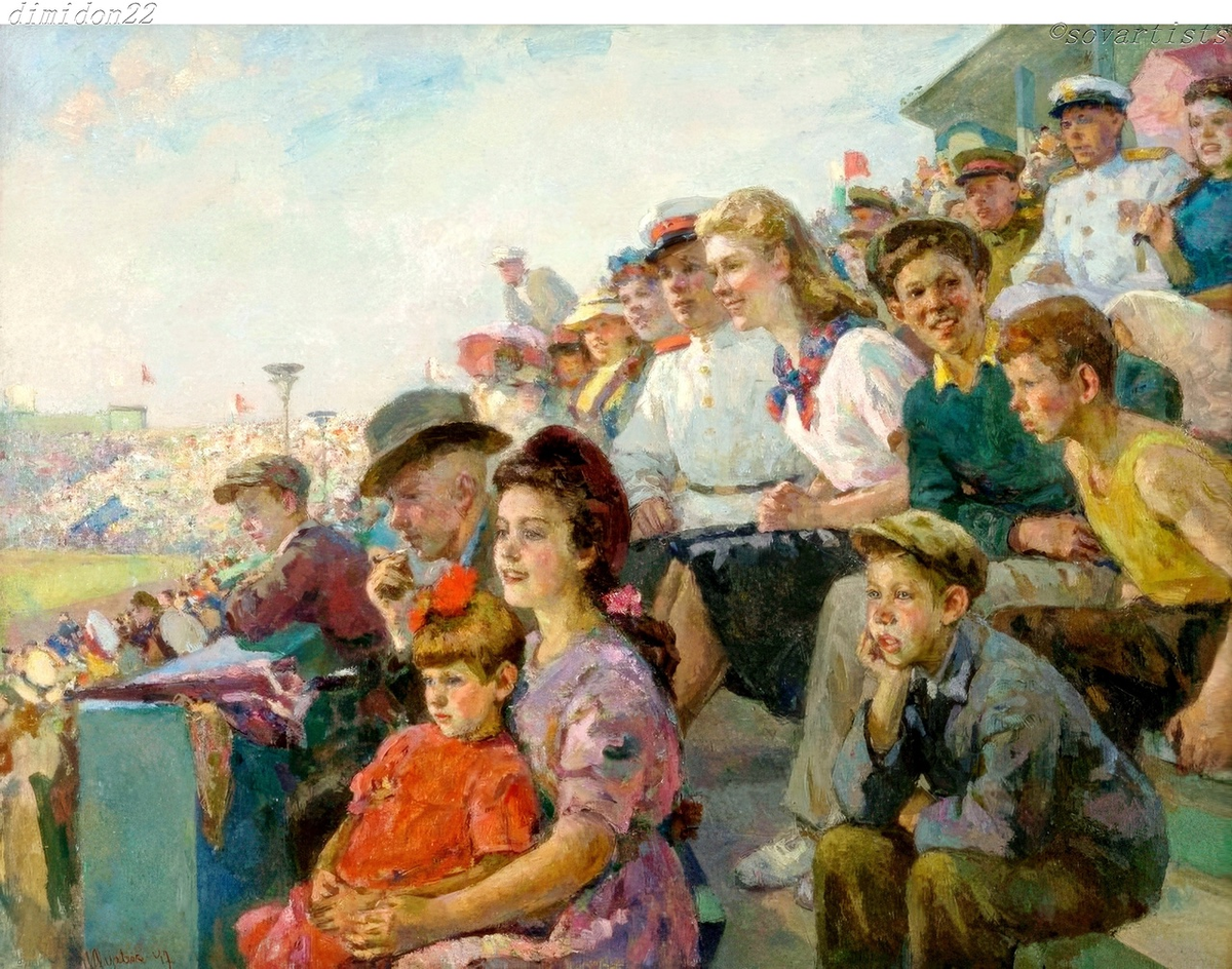 Гурвич Иосиф Михайлович (18.01.1907, Кишинёв - 1992, Москва). «На стадионе». 1947 год. Холст, масло; 140 x 180 см.; (Самарский областной художественный музей).