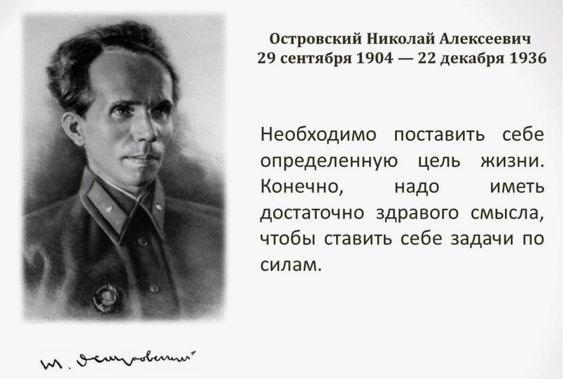 Это слова Николая Алексеевича Островского при жизни, но когда он уже был тяжело, смертельно болен. 22 декабря 1936 года он умер... Выдающийся советский писатель-коммунист, автор знаменитого романа "Как закалялась сталь", на котором воспитывалось не одно поколение советских детей и подростков. "Если бы кто-нибудь спросил меня, в чём наибольшее счастье человека, я ответил бы: это счастье работать в нашей великой Советской стране, бороться за дело социализма, быть в передовых рядах комсомола, в рядах партии Ленина - Сталина". 1 октября 1935 года Николая Островского наградили орденом Ленина. 1935 год он вообще считал самым счастливым годом в своей жизни. Зная, что ему осталось очень мало жить, он использовал каждый час, чтобы быть "полезным", старался дописать новую книгу. Николай Алексеевич говорил: "Я буду жить и сопротивляться, пока будет жить хотя бы одна-единственная клетка моего тела. И никто не посмеет сказать: "Он мог бы ещё жить!" Исчерпав все силы и возможности в борьбе с неумол
