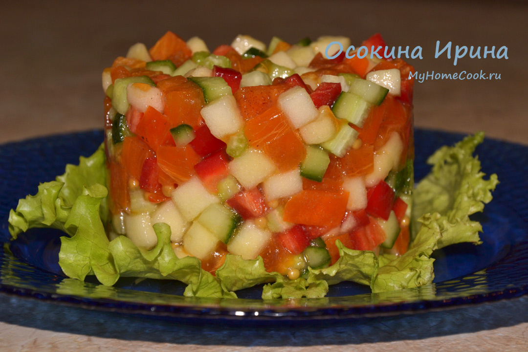 Пока сезон хурмы в разгаре, продолжаю добавлять её в рацион семьи, сегодня у нас такой салат: порезала кубиком половину красного сладкого перца, 1 стебель сельдерея, 1 свежий огурец, небольшое очищенное яблоко и 1 хурму. В пиалке смешала 2 ст.л. оливкового масла, 1 ст.л. лимонного сока, 1 ч.л. зернистой горчицы, соль и перец по вкусу и подвзбила до состояния эмульсии, заправила этим салат, немного настояла в холодильнике и подала. Очень вкусный, интересный и сочный салатик) Приятного аппетита
