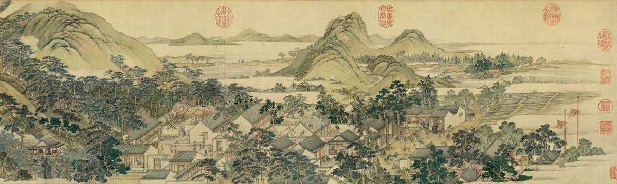 В коллекции музея провинции Ляонин находится полотно "Процветающий Гусу" (姑苏繁华图) длиной в 1225 см. и шириной в 35.8 см. Оно написано художником Сюй Яном (徐扬) в эпоху Цин в период правления Цяньлуна (годы правления: 1735-1796 гг.). На нём запечатлён облик города Сучжоу (Гусу - одно из его названий) в эпоху благоденствия цинской династии. Предлагаю "прогуляться" по картине и подробно изучить её фрагменты.