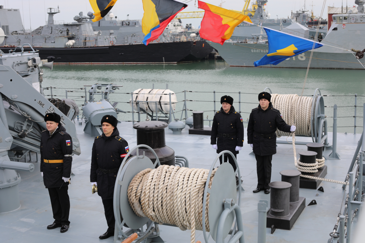 егодня в г. Каспийске в пункте базирования кораблей Каспийской флотилии состоялась торжественная церемония приёма в состав Военно-Морского Флота (ВМФ) России малого ракетного корабля (МРК) «Туча» проекта 22800. Церемония приёма в состав ВМФ и подъёма на корабле Андреевского флага прошла под руководством заместителя главнокомандующего ВМФ по вооружению вице-адмирала Игоря Мухаметшина. Выступая на торжественной церемонии вице-адмирал Игорь Мухаметшин от имени Главкома ВМФ России адмирала Александра Моисеева поблагодарил весь трудовой коллектив Зеленодольского судостроительного завода за их вклад в укрепление боевой мощи Военно-Морского Флота и выразил уверенность, что экипаж корабля с честью выполнит поставленные задачи, продолжая славные подвиги моряков. Приказом Главкома ВМФ МРК «Туча» зачислен в корабельный состав Черноморского флота. В торжественной церемонии также приняли участие командующий Каспийской флотилией контр-адмирал Олег Зверев, генеральный директор АО «Зеленодольский заво