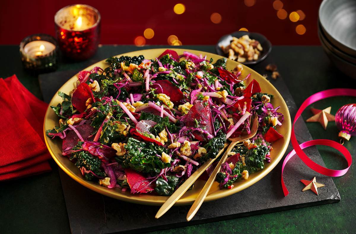 Используйте сезонную красную капусту, свеклу и грушу, чтобы сделать этот яркий зимний салат. Добавьте сверху домашнюю заправку чимичурри с травами и наслаждайтесь в течение всего праздника.