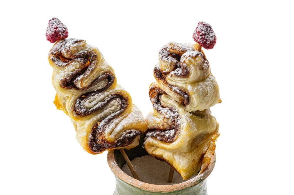 Ингредиенты Слоеное тесто 200 г Шоколадная паста 100 г Куриное яйцо 1 штука Свежие ягоды по вкусу Сахарная пудра по вкусу Инструкция приготовления 30 минут Распечатать 1.Подготовить все ингредиенты. Слоеное тесто предварительно разморозить при комнатной температуре. Разогреть духовку до 180 градусов. 2.Тесто тонко раскатать на подпыленной мукой поверхности. Разрезать тесто на две равные половины. 3.Распределить шоколадную пасту по одной половине. 4.Накрыть второй половиной теста. 5.Нарезать получившийся сэндвич на полоски шириной 3–4 см. 6.Собрать полоски гармошкой, сужающейся кверху. 7.Нанизать полоски теста на шпажки. 8.Выложить елочки на противень, покрытый пекарской бумагой, и смазать их взбитым яйцом. 9.Отправить в духовку на 15–20 минут или до золотистого цвета. 10.Подавать елочки к праздничному столу, украсив вершины ягодами и посыпав сахарной пудрой. Понравился рецепт — поделитесь им с друзьями в социальных сетях! Готовьте вместе с «Едой»!