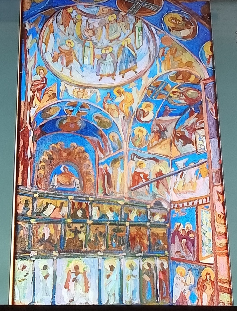 Пару недель назад я рассказывала о чудесном возрождении церкви Успения Богородицы на Волотовом поле, которая в годы немецкой оккупации была почти полностью разрушена, а затем восстановлена практически в прежнем виде. Сегодня я своими глазами увидела, как идет процесс реконструкции разрушенной немцами настенной росписи.