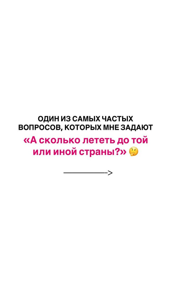 А сколько лететь до….? Полезный чек-лист, сохраняйте его, так вы заранее сможете подготовиться к перелету и взять в самолет все самое необходимое! Время прямого перелёта в различные направления: 🇹🇷 Турция: 4-5 часов 🇪🇬 Египет: 6-7 часов 🇦🇪 ОАЭ: 5,5-6 часов 🇶🇦 Катар: 5,5 часов 🇨🇺 Куба: 13-14 часов 🇹🇭 В Таиланд: 9-9,5 часов 🇱🇰 Шри-Ланка: 8,5-9 часов 🇮🇳 Гоа: 8 часов 🇨🇳 Китай: 10-11 часов, о. Хайнань 🇻🇳 Вьетнам: 10-11 часов 🇲🇻 Мальдивы: 9 часов 🇻🇪 Венесуэла: 13 часов 🇮🇩 Бали: 11-13 часов Заинтересовал тур? Пиши!