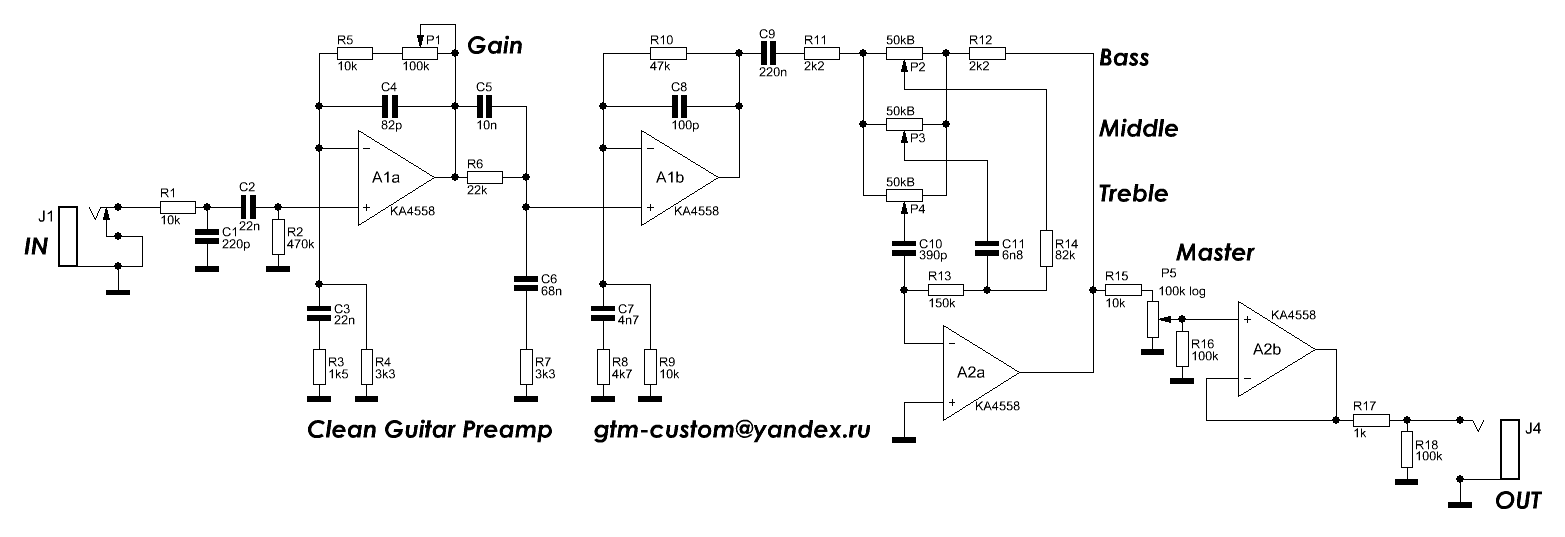 Мой «valve-state» комбик на протяжении трех лет максимально добросовестно выполнял свои функции по усилению сигнала гитары и бас-гитары. Однако, с появлением в моём арсенале полноценного лампового аппарата, стали явственно видны все компромиссы и недочёты гибридной схемы; в связи с чем сей девайс остался не у дел🤷♂️. В то же время, был накоплен положительный опыт работы с преампом на TL074, в моём исполнении известного как Pocket-amp: Этот преамп даёт весьма неплохой чистый звук и также хорошо работает в связке с известным усилителем на TDA2005. Посему, не мудрствуя лукаво, я решил объединить две схемы в одном корпусе☝️. Вот что получилось: При апргейде комбика была существенно изменена компоновка; так, радиатор микросхемы был вынесен наружу задней крышки, а в ней самой сделаны дополнительные отверстия для лучшего охлаждения блока питания и элементов схемы усилителя мощности. Напряжение питания увеличено до максимально допустимых 18 Вольт с целью повышения выходной мощности