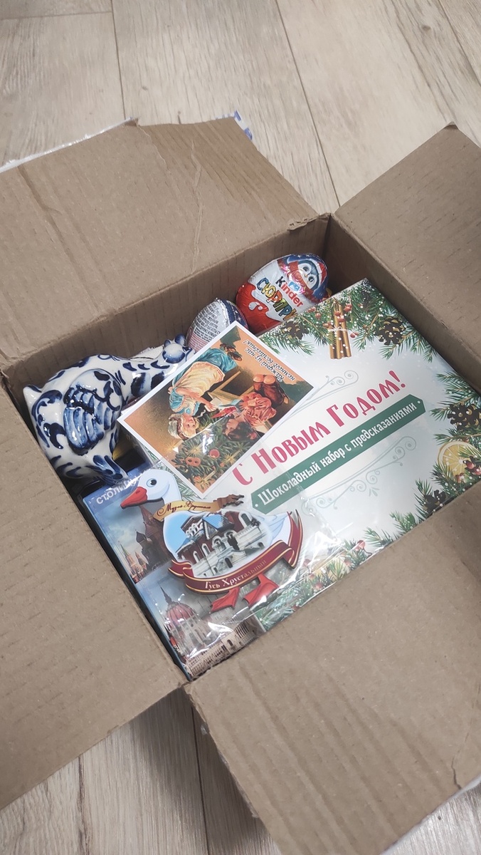 В анкете писала что я мама троих сыночков, поэтому сладкий подарочек ждал и их. Вообще приятно получать не только новогодние подарки, но ещё и сувениры из города отправителя, фарфоровая статуэтка гуся заняла почётное место на полке)