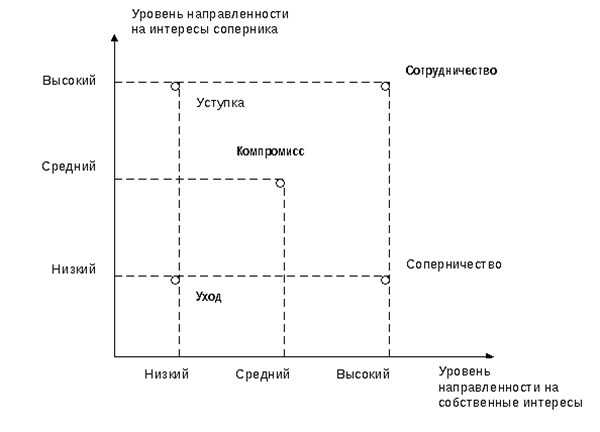 - избегающий не почувствует себя удачливым, не заберет предмет конфликта. Конфронтация (доминирование, соперничество) - открытая борьба за свои интересы, упорное отстаивание своей позиции. «Я выигрываю, ты проигрываешь»- выражается в усмешке, самоуверенности, взгляде свысока, занимании большого количества пространств