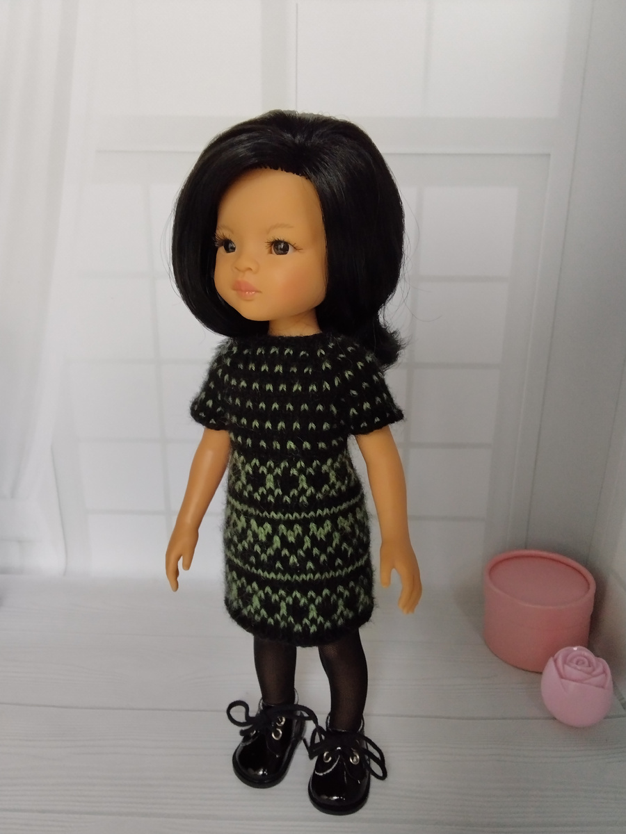 Пряжа - Alize Angora Gold (550 м / 100 грн.) Спицы √2. Набираем 39 п. 1. Кром., планка (1 лиц., 1 изн.), 33 лиц., планка (1 изн., 1 лиц.), кром. 2. и все четные ряды вяжем по рисунку, лицевые петли провязываем лицевыми, изнаночные - изнаночными. Дальше вяжем по схеме. 3. Кром., планка (1 лиц., накид - дырочка для пуговички, 1 изн.), вводим зелёную нить - 1 зел., 1 черн., 1 зел., 3️⃣ - 3 петли реглан - прибавка ( черн.,), 1 лиц ( зел.)., прибавка ( черн.), следующие 7 петель рукава - 1 зел., 1 черн... 3️⃣, следующие 9 петель переда - 1 зел., 1 черн..., 3️⃣, 7 петель рукава - аналогично, 3️⃣, и 3 петли спинки - 1 зел., 1 черн., 1 зел., и черной нитью - планка (1 изн., 1 лиц.), кром. 4. Вяжем черной нитью, в конце ряда, накид, который делали для дырочки, провязываем вместе с лицевой. 5. Вяжем черной нитью. Кром., планка, 4 лиц., 3️⃣, 9 лиц., 3️⃣, 11 лиц., 3️⃣, 9 лиц., 3️⃣, 4 лиц., планка, кром. 6. Кром. и планку вяжем черной нитью, (1 черн., 1 зел.)*, планка и кром черной нитью. 7. В