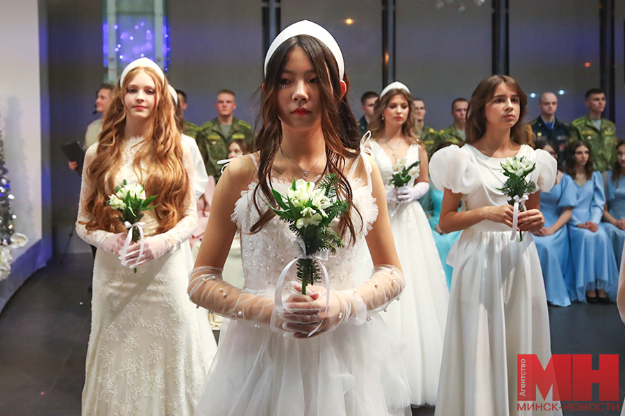 Звуки вальса, элегантные платья, строгие костюмы и волнующие взгляды молодых людей. Большой новогодний бал прошел в Национальной школе красоты 21 декабря, передает корреспондент агентства «Минск-Новости». Курсант кадетского училища Никита волнуется: вот-вот выход на импровизированную сцену. Азы вальса юноша осваивал два месяца, говорит, получалось не сразу. — Самое сложное — понять технику, порядок движений. Когда стало получаться, обрадовался, даже гордился собой. Кстати, это увлекательно. Невольно окунаешься в эпоху балов Великого Ростова со строгим дресс-кодом. Очень необычно. Хоть и есть опыт выступлений, все равно волнуюсь, — поделился Никита. Мгновение — и в зале появились пары. Среди участников — молодые люди 13–25 лет. Это учащиеся Национальной школы красоты, курсанты лицеев МЧС и МВД, Института погранслужбы, кадеты Суворовского училища. Присоединилась к торжеству и «Мисс Беларусь — 2023» Элеонора Качаловская. Все по бальному протоколу. За ходом вальса следит распорядитель. В п