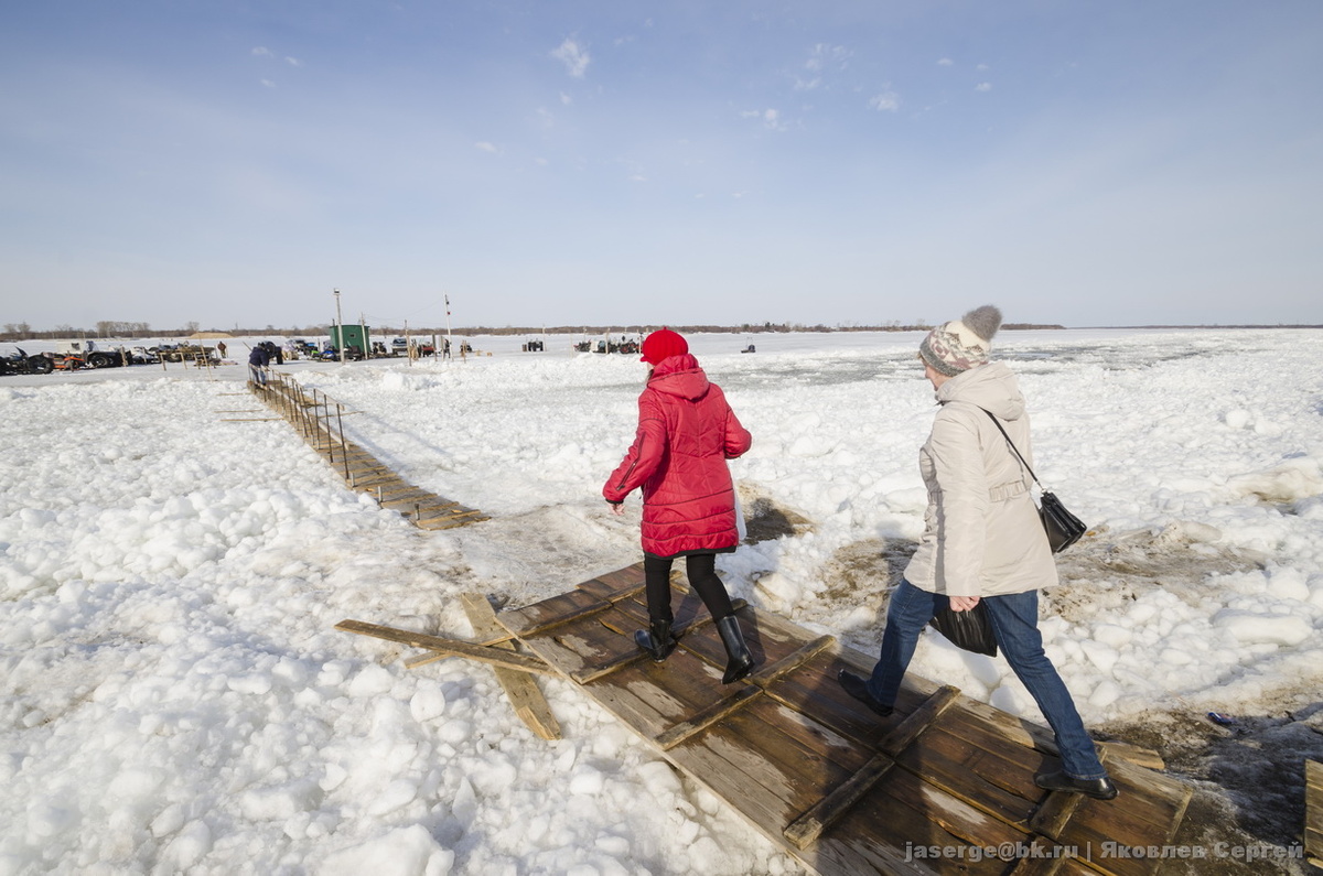 Ледовые пешеходные переправы это фишка Архангельска. Хотя это атавизм и такого больше в России нигде не встретишь (но это не совсем так))). Для многих приезжих это выглядит дико и они не понимают почему, живя в XXI веке, жители Архангельска так ходят. Что такое "пешеходная переправа": через судоходный фарватер на мелкокрошеный лед брошены деревянные мостки. Обычно переправа ровно посреди реки и глубина в том месте более 10 метров. За переправой следит смотритель - он разбирает мостки, когда идет судно, и потом снова ее собирает. Ледовые переправы в Архангельске это уникальная возможность официально походить по льду Северной Двины, "поймать" ледокол или огромный сухогруз (на крайний случай можно довольствоваться и маленьким буксиром). Да и просто постоять посреди реки и поглядеть на панораму Архангельска - это много стоит . Переправы появятся как и обычно, впрочем : Все переправы на одной карте, ссылка по клику на яндекс.карты Но не забываем, что: На всех зимних обзорных экскурсиях