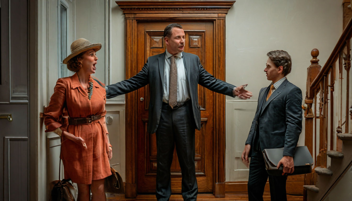 По мере приближения к нужному этажу Мухин слышал голоса все более отчетливо и, когда вышел на свою лестничную клетку, увидел их обладателей аккурат возле двери своей квартиры. Незнакомый долговязый парень вежливо поддерживал под локоток солидную даму бальзаковского возраста и буквально "лил ей в уши" возмутительные небылицы, указывая на квартиру Мухиных рукой.