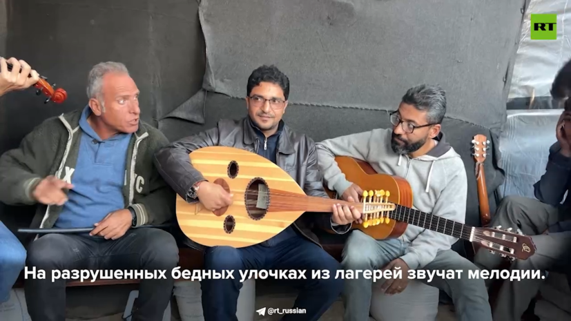 Палестинский певец Ахмад Абу Амша бежал на юг сектора Газа от обстрелов Израиля и теперь поёт с детьми в лагере для беженцев. Ахмад Абу Амша преподавал музыку в консерватории им. Эдварда Саида на севере анклава. В Хан-Юнис перебрался без музыкальных инструментов — они оказались под завалами. Он рассказал корреспонденту RT Мустафе аль-Байду, что люди устали от войны, поэтому он купил гитару и стал петь с детьми в лагере. «Их настроение настолько улучшилось, что родители приходили и благодарили меня», — сказал он. Ранее в ЦАХАЛ заявили о нанесении удара по командному пункту палестинского движения ХАМАС, расположенному в здании школы в городе Газа.