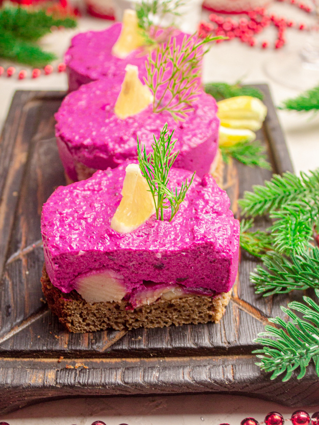 Селёдка под шубой уже «слегка» приелась, но на Новый год без неё – как без ёлки. Любовь к ней упряма, как кот у холодильника. Но любимую классику можно слегка обновить! Селёдка под шубой может быть такой же вкусной, но более изысканной и... фотогеничной! 🎉 Такой закуске даже ворчуны дадут шанс. Во-первых, это красиво. Вот правда – настолько красиво, что жалко сразу съесть. А во-вторых… Остальное про «шубу» вы, пожалуй, знаете😉… 🛒 Что нам понадобится? 👩🍳 Как будем готовить? 1. Сначала работаем с желатином. Его нужно замочить в холодной воде – пусть набухает, а вы пока займитесь остальными ингредиентами. Через 10 минут нагрейте его на водяной бане или в микроволновке, чтобы он полностью растворился. 2. Свёклу очищаем и режем. Если запекли её заранее – вы сэкономили время. Нарезайте её на кубики и отправляйте в чашу блендера. 3. Добавьте к свёкле майонез, соль и щепотку перца. Теперь измельчайте всё это до гладкой, кремовой массы. Это будет ваш мусс. На этом этапе стоит попробовать