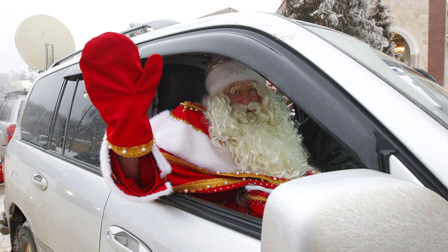 Дед Мороз подошел к капоту и сделал знак, мол, откройте. Снял варежки и скрылся за крышкой. Через несколько минут появился снова.