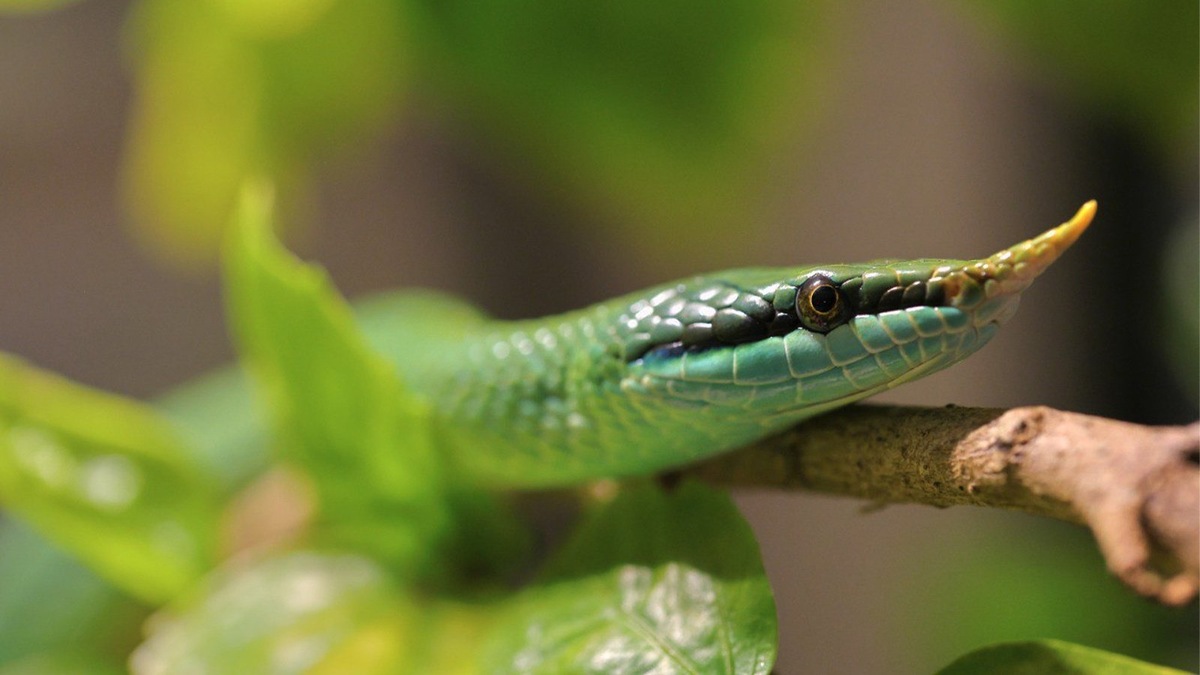 В Ленинградском зоопарке живет удивительная пара рептилий — носатые полозы Буланже, отличительной особенностью которых являются направленные вверх щитки, напоминающие рог. Эти необычные пресмыкающиеся, которых часто называют «зелеными единорогами», недавно порадовали сотрудников зоопарка потомством. Как рассказали в зоопарке, полозы Буланже — жители тропических лесов и скальных районов южного Китая и северного Вьетнама. В дикой природе эти змеи предпочитают вести ночной образ жизни, скрываясь у водоемов или в кронах деревьев. Их рацион состоит из мелких грызунов, птиц и других небольших позвоночных. Интересно, что маленькие полозы появляются на свет совсем не похожими на своих ярких родителей — они рождаются коричнево-серыми с темными полосами по бокам. Первый год жизни окрас змей меняется на серый со стальным отливом, и только к двухлетнему возрасту они приобретают характерный зеленый цвет. Ленинградский зоопарк, который является одним из старейших в России, стал домом для 600 видов ж