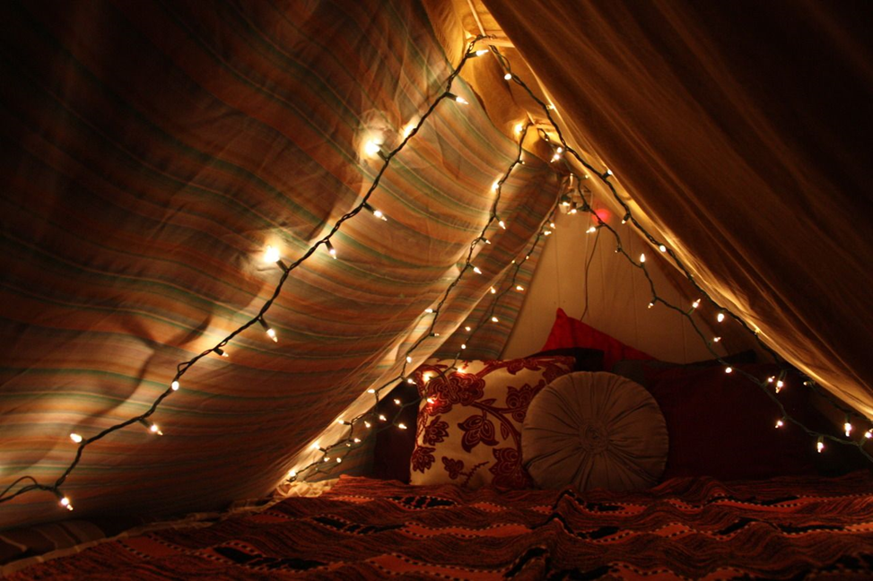Атмосфера была сказочной. За небольшим окном висела загадочная луна, шел настоящий новогодний снежок, внутри стоял шатер, светились лампочки, а еще тихонько играл магнитофон с любимыми инструментальными мелодиями. Саксофон пел, страдал, веселился, рассказывал, обещал. Женька купил торт, кажется, он получил пенсию за декабрь на карту. На ковре, расстеленном на полу, лежали мандарины, в свете гирлянд какого-то неземного, инфернального цвета. И конфеты россыпью, игравшие золотистыми обертками. А еще Любка утащила из столовой целую тарелку нетронутого салата «Оливье». Без «Оливье» Новый год мог и не наступить, так говорили её родители.