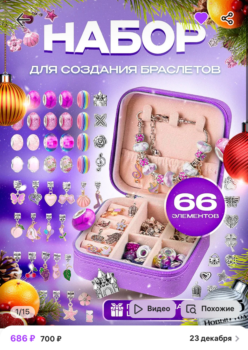 Возраст указан примерно, многое может понравится и девочкам постарше, но все же сузила возрастные рамки и указала возраст в котором подарки придутся по вкусу на 99%. Начнем с красоты. Девочки любят украшения с детства, поэтому набор для создания браслетиков никогда не будет лишним. Набор для бесконечных празднований дней рождений, в наборе свеча со светящимся огоньком. Значит можно загадывать желания. 🥰 Восторженные отзывы об этих пупсиках читаю уже второй год, часто они стоят 600руб., перед праздниками цена выше, 900-1200руб. А если ребенок любит петь? Тогда присмотритесь к набору с двумя микрофонами, цена отличная, отзывы хорошие. 👍🏼 9 из 10 девочек любят единорогов, такая сумочка с единорогом должны будут прийтись по душе. Понравились ли Вам варианты? Может у кого-то есть что-то из этих товаров и можете поделится отзывом?