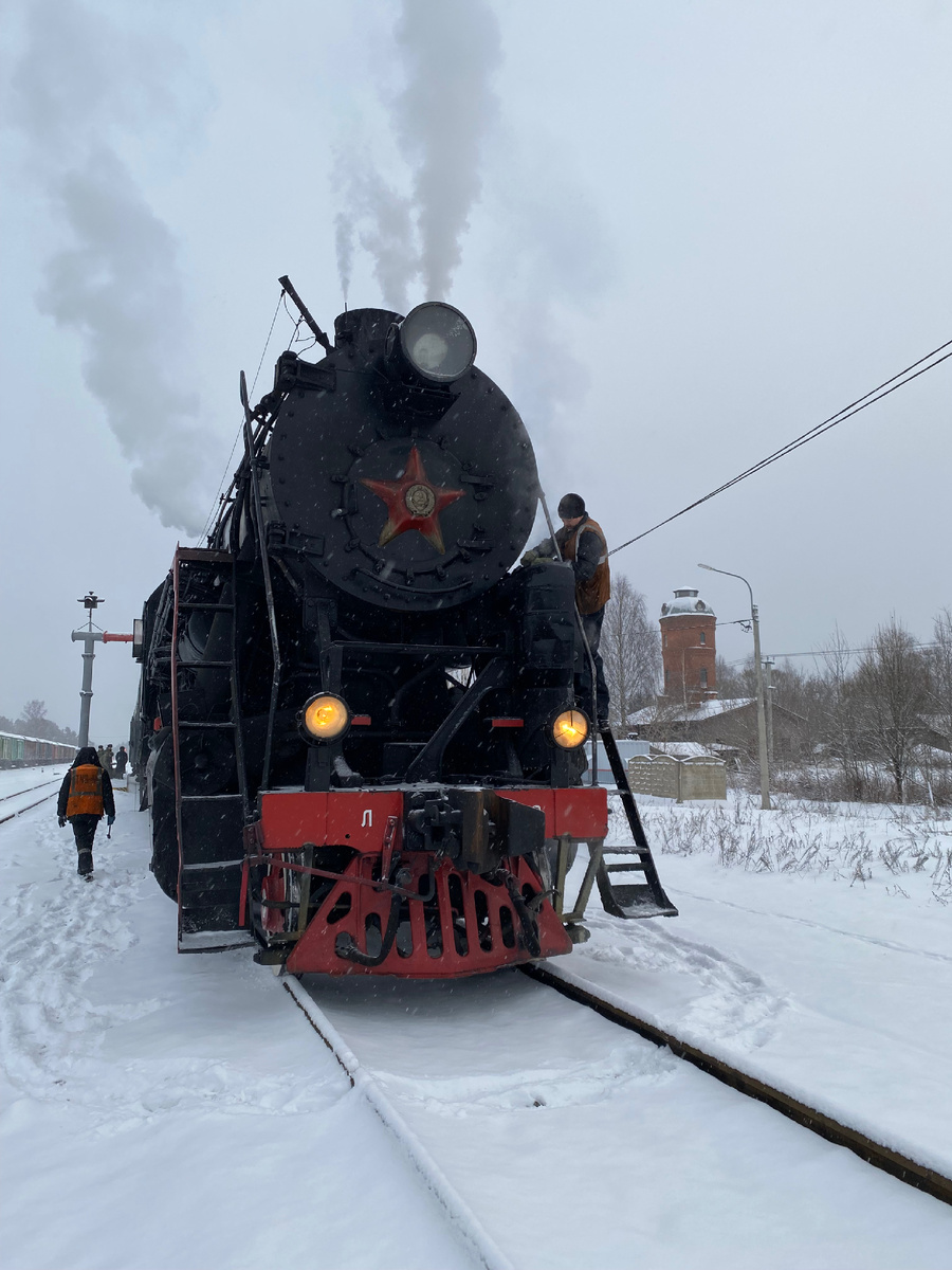 Станция Куженкино и паровоз серии Л на гидроколонке.