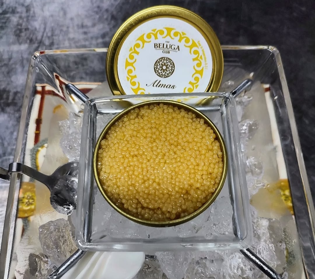 House Almas знает толк в роскоши. Их икра стоит как новенький Mercedes, а упаковка — как хорошие часы. Банки из чистого золота 998 пробы — не просто красиво, это обязательное условие. Когда платишь $35 000 за килограмм, даже крышка должна шептать: «Ты особенный».