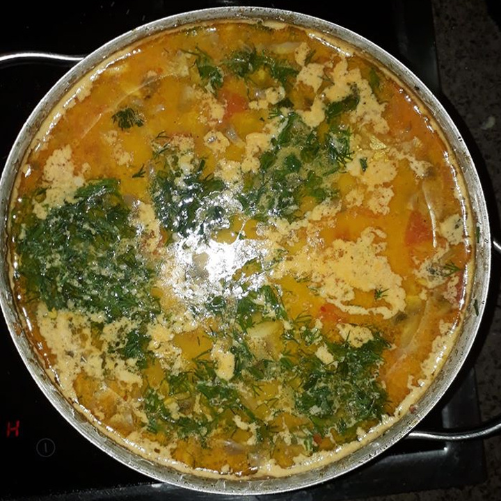 И в конце забросила чеснок (3 зубчика), припущенный на половине чайной ложки масла, и посыпала рубленой зеленью укропа.