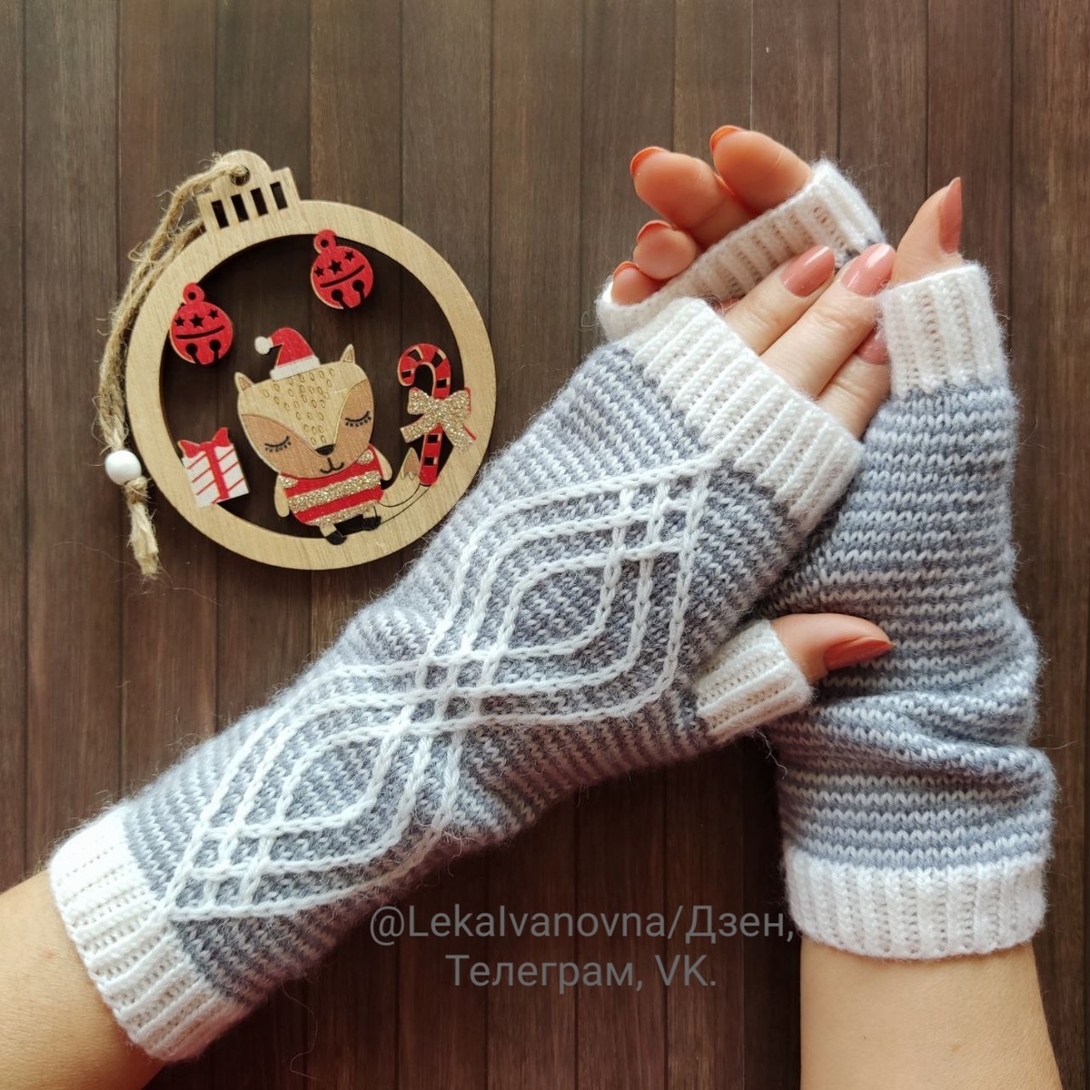 Всех приветствую на своей страничке. Для тех, кто не знает, меня зовут Ольга и я люблю вязать. Я как то уже показывала свои митенки Хеликс с вытянутыми петлями. Но в тот раз у меня не было схем, все никак не было времени чтобы их нарисовать. Сейчас схемы нарисованы, и я их вам покажу. От начала до конца митенки 100 рядов. По 10 рядов приходится на резинки, что на запястье и возле пальцев. И 80 рядов узором. Длина митенки выходит около 25 см. Большой палец вяжите любым удобным для вас способом. Я не стала рисовать схему из двух одинаковых элементов узора. Глядя на схему и фото митенок, не трудно понять где и как второй элемент узора встраивается в рисунок. Глядя на схему, можно подумать что это какой то сложный узор. Но на самом деле все довольно несложно. В нечетных рядах вяжем цветной нитью, при этом белые вытянутые петли (в схеме обозначены галочкой), в этих рядах снимаем не провязывая (нить за работой). А четные ряды вяжем белой нитью, не забывая при этом вытянутые петли провязыв
