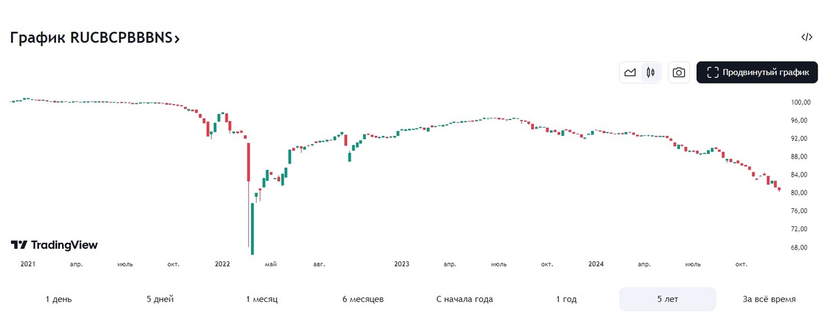 Облигации все еще очень дешевые и с большими доходностями, вот, например, индекс корпоративных облигаций на глобальном графике.