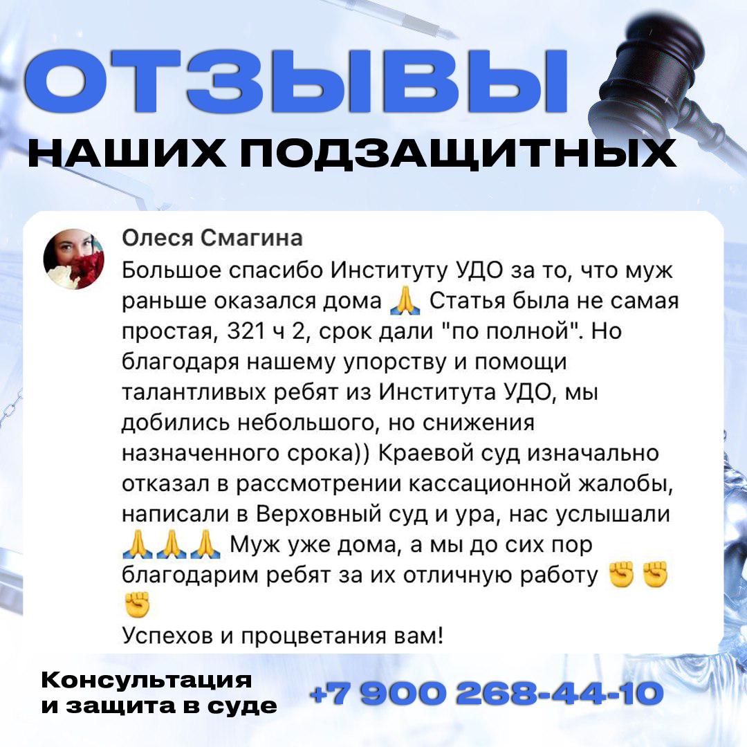 Все наши контакты, отзывы и победы в одном месте! Подписывайтесь в удобной соцсети. У нас много полезной информации о смягчении наказаний, тюрьме и законах! 👉🏻 https://institut-udo.com/contacts
