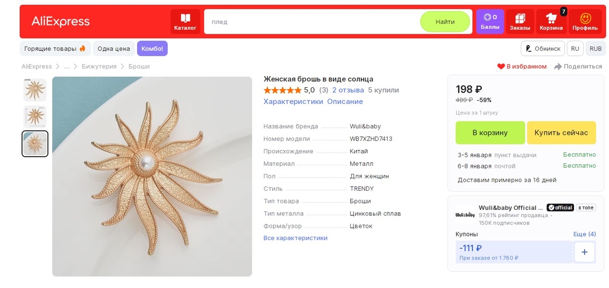 Застежка типичная для большинства брошей, продаваемых на этой площадке.