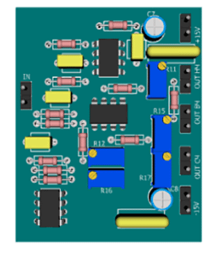 Низкочастотные и высокочастотные фильтры выполнены на ОУ DA1 и DA2 и представляют собой фильтры Бесселя второго порядка.
