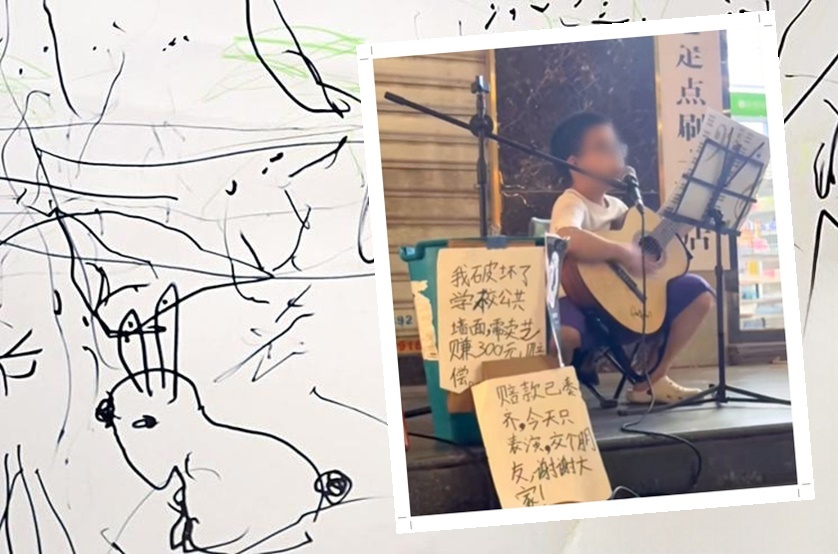 8-летний сын испортил стену в школе. Родители из Китая преподали ему ценный урок и заставили нести ответственность самому