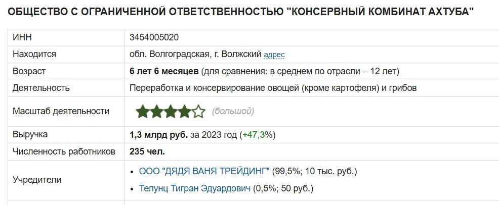 О промежуточных итогах реализации масштабного проекта в Волгоградской области на днях сообщило ООО «Консервный комбинат Ахтуба». Под этим юрлицом в регионе развивается бренд «Дядя Ваня». Завод начали возводить с нуля в августе 2020 года. Компания заявила, что намерена как расширять линейку продукции на волгоградских мощностях, так и в целом увеличивать объем производства.