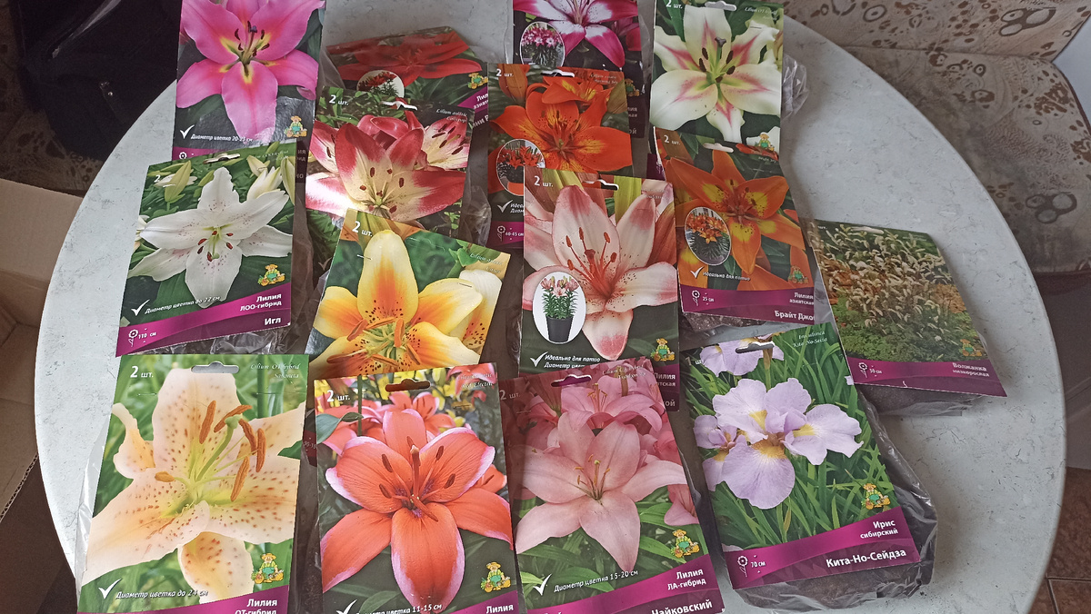 Что-то не повезло мне с этим магазином. Семена у них вроде хорошие, а с саженцами как-то не задалось. Первый раз делала заказ в 2023 году, только у них я нашла саженец боярышника с махровыми цветочками по приемлемой цене. Чтобы оправдать доставку к заказу добавляла иргу, в итоге только ее и получила. Деньги за боярышник мне вернули, вернее оставили их на моем счете. Чтобы не делать возврат, решила сделать еще один заказ. В конце концов не заносить же магазин в черный список из-за одного саженца, тем более с возвратом денежных средств. На этот раз мне приглянулись лилии, уж очень красивые. Цены в магазине несколько выше, чем там, где я обычно покупаю, но ассортимент другой. Выбрала, заказала, получила: Все живое, упаковки красивые. Высадила, поставила бирки с названиями, в тетрадку записала что и где посажено. По итогу их 13 лилий 9 штук зацвели не по сорту! В этот же год покупала лилии в другом магазине, там тоже был пересорт, но всего одна из девяти! Отправила претензию, получила в