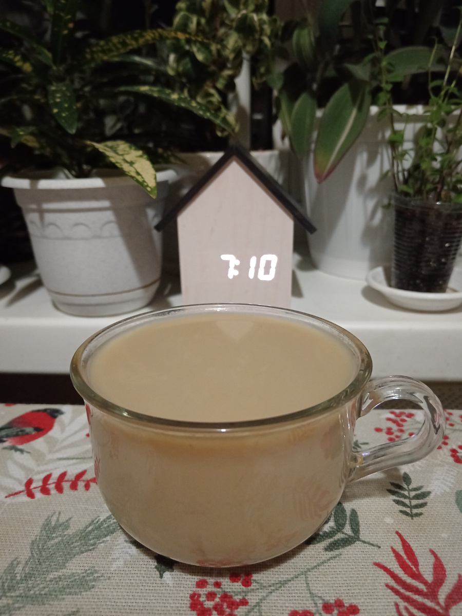 7:10. Горячий крепкий чай с молоком привел физическое состояние в норму. С супругом выпили по две больших чашки чая. В дорогу не завтракаю. Ещё неизвестно как может повести себя организм в пути. Чай и только чай.