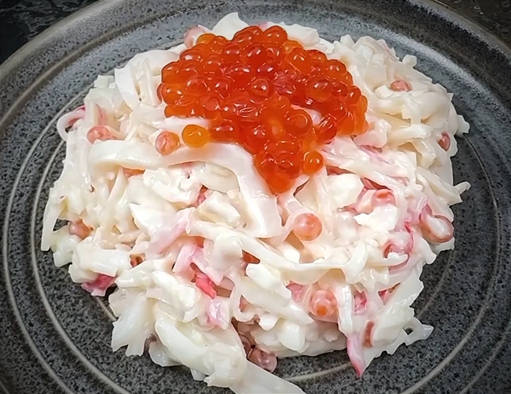 Забудь про скучные рецепты, мы ныряем в мир вкуса, где Снежный краб – это не просто салат, а целая симфония! И да, он реально улетает со стола быстрее, чем ты успеешь моргнуть. Этот салат – сама нежность, понимаешь? Никаких креветок, чеснока или укропа, которые забьют его тонкий вкус. Здесь всё продумано до мелочей. Итак, вот тебе наш секретный рецепт, держись крепче: Салат Снежный краб – для тех, кто ценит изысканность Кальмары – 500 грамм (замороженные, уже чистенькие, спасибо производителю). Крабовое мясо – 180 грамм (без всяких там “крабовых палочек”, только настоящее мясо!). Яйца – 4 штуки (варим вкрутую, но берём только белки – желтки оставь на потом). Соль – щепотку или две, по вкусу, знаешь, как ты любишь. Майонез – 130 грамм (лучше домашний, но это уже другая история). Красная икра – 95 грамм (вот она, наша вишенка на торте!). 1. Разморозка: Кальмары достаём из морозилки и даём им спокойно отойти от холода. Пусть вспомнят о тёплых морях. 2. Кипяток: