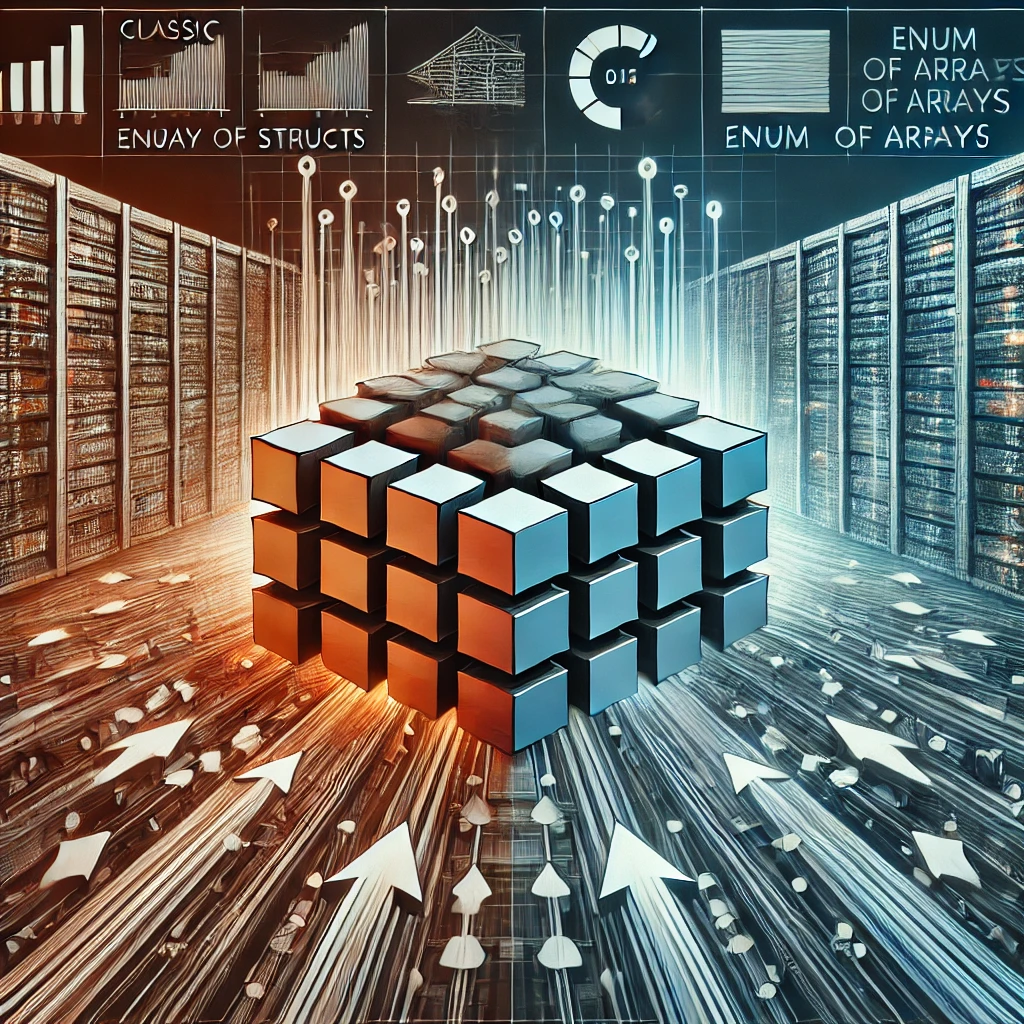 Работа с массивами данных — это одна из ключевых задач в программировании. Каждый программист сталкивался с вопросом: как организовать данные так, чтобы они были максимально эффективны в обработке и хранении? В статье "Enum of Arrays" рассказывается о подходе, который предлагает использовать структуры данных более эффективно, и анализируется, как это влияет на производительность современных систем. Enum of Arrays — это метод организации данных, который противопоставляется классическому подходу "Array of Structs" (массив структур). Основная идея: Например, вместо массива объектов, содержащих имя и возраст, Enum of Arrays создаёт два массива: один для имён, другой для возрастов. Enum of Arrays предлагает несколько ключевых преимуществ, которые делают его идеальным для работы с большими данными: Этот метод лучше всего подходит для задач, где требуется интенсивная работа с большими массивами данных: На мой взгляд, Enum of Arrays — это не просто метод, а философия работы с данными. В эпоху