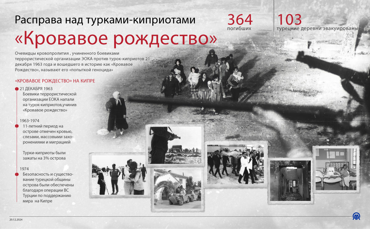 В конце декабря 1963 года 104 турецких деревни были атакованы греками - фанатиками. Эти события получили название "Кровавое Рождество".