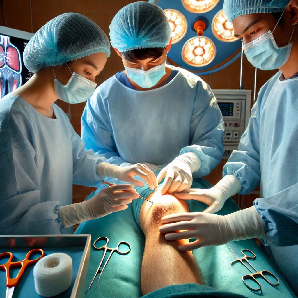 Наконец все закончилось и тот же медик повез меня обратно в палату. Там мне подсоединили прибор, который каждые полчаса автоматически измерял давление и передавал данные в комнату, где находилась дежурная медсестра. Медсестра крутилась как заведенная- разносила больным по палатам разные таблетки и микстуры, измеряла температуру и все это быстро и с шутками-прибаутками . Аппарат измерения давления сжимал мне руку каждые 30 минут и будил меня ото сна. Ноги постепенно отошли от наркоза и появилась боль в оперированной коленке, но как только я сказал об этом медсестре она тут же принесла мне какую-то таблетку и боль утихла. Утром я уже поднимался на ноги и ходил по палате, чтобы размяться. Потом решился и тихонько прошел в душевую. Открыл воду и немного обмылся после операции. Медсестра услыхала, что в душе кто-то купается заглянула туда и удивилась что я так рано после операции решил принять водные процедуры, шуганула меня обратно в палату и сказала, что в полдень они соберут несколько выписанных больных в машину Скорой Помощи и эта машина развезет нас по домам. Медсестра отдала мне все необходимые бумаги и дала одну бумагу по которой я имел право заказать 1 раз машину Скорой Помощи в случае необходимости.