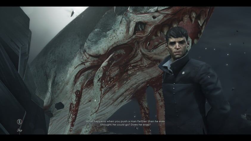 Сверхъестественные силы во вселенной Dishonored даруются Чужим, загадочным человеком со смолисто-черными глазами. Первая часть представляет его стоической и незыблемой сущностью, вторая – ехидным созерцателем. Сложно сказать, это намеренное решение или непонимание персонажа, и насколько оно продиктовано новыми технологиями. В оригинале он парил перед нами на одном месте, а в сиквеле он ходит вокруг, телепортируется из стороны в сторону и всячески жестикулирует. Его поведение стало эпатажнее, стоицизм пропал. Охота назвать его мальчиком эмо, только он оскорбится. Потустороннее измерение тоже приобрело новый облик: вместо голубой пустоты с витающими кусками зданий явилась черная бездна из острых скал. Новый дизайн развлекает лоском, но старый был загадочнее