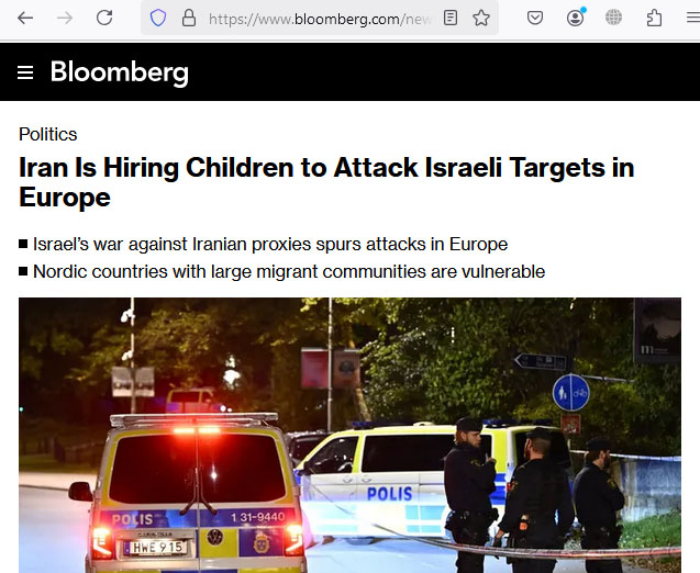 На днях слушал интервью с политологом Vladimir Pogosyan на канале "Ноян Тапан" и он с печалью высказал следующую мысль: "Не знаю, что случилось с мудрым и прагматичным иранским народом, но они совершают одну ошибку за другой. Иранцы потеряли Сирию и усилили Турцию, они влезли в конфликт России с Украиной и они рискуют получить в ответ революцию". В эти слова Погосяна очень чётко вписывается очередная мягко говоря неадекватная выходка Ирана - спецслужбы исламского государства через соцсети вербуют детей(!) в среде иммигрантов из Ближнего Востока для нападений на евреев в Европе. Они предлагают 1500 евро за теракты против евреев, 1000 евро за поджог еврейского объекта и 120 евро за мелкое хулиганство на улице. Об этом сообщают спецслужбы Швеции и Дании, уже арестовавшие несколько арабских подростков планировавших преступления. Учитывая резкий рост негативных настроений против иммигрантов из мусульманских стран, подобные выходки навредят не столько еврейским интересам (хотя от рук хулиг