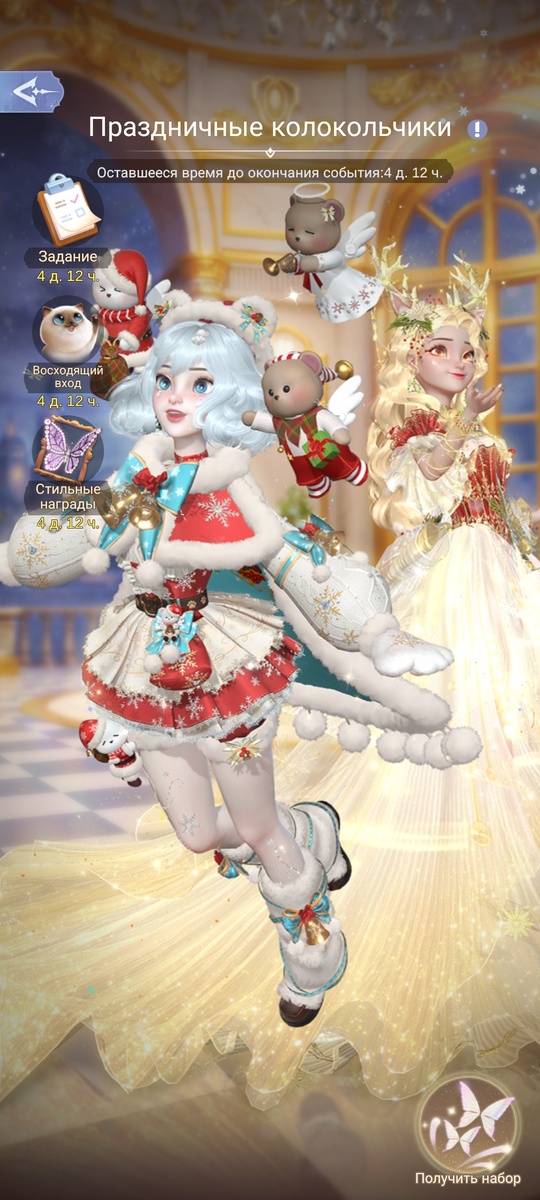 Вот обзорчик на новогоднее обновление в Time Princess Первое было это. Кстати я пару вещиц уже получила:)🥹😘🤳🏻💌💕. Они ооочень милые и классные. Потом вот за такие карточки можно купить новогодние вещи за 2024 Ну и вот описание из приложения.❤️🔥 Всех с наступающим НГ!!!💞😚🥶❄️☃️🌲🎅🏻